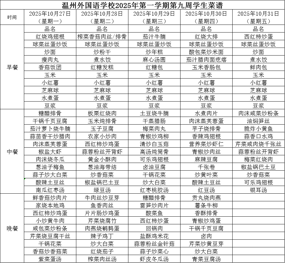 一周食谱 作者: 发布时间:2025-10-27 浏览量: