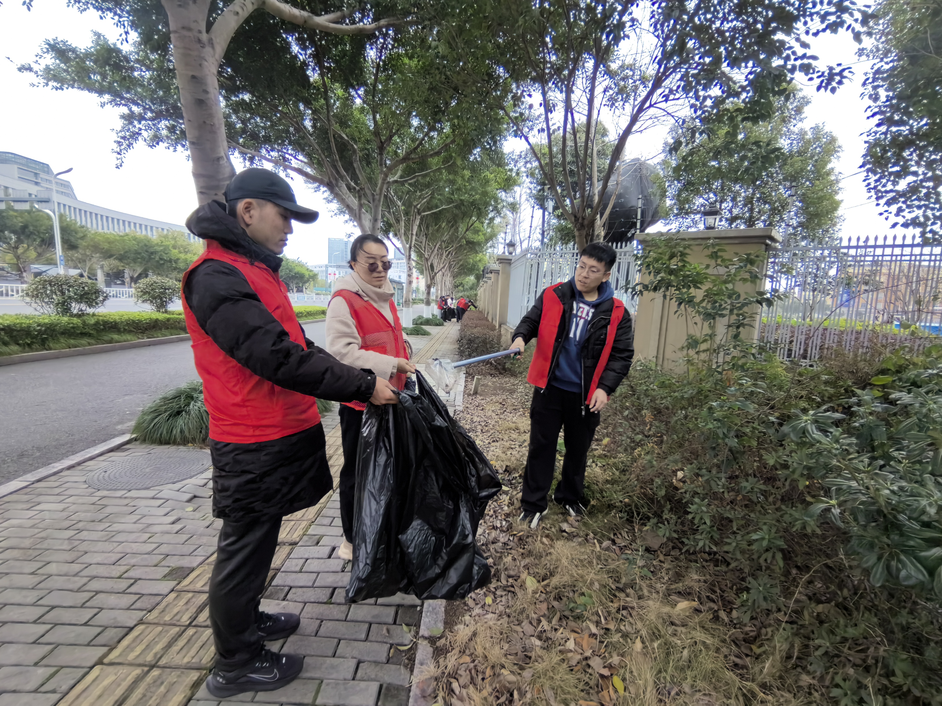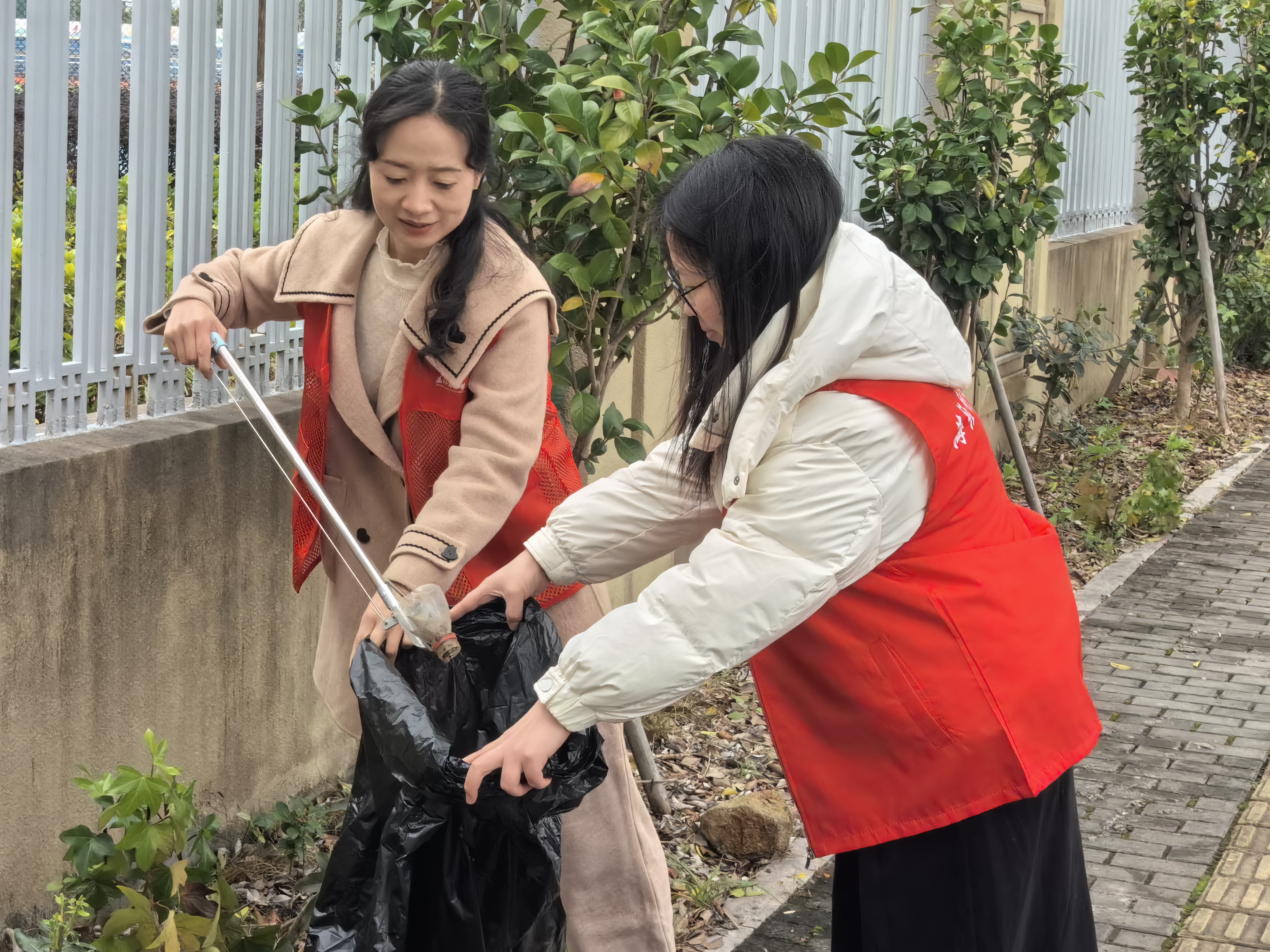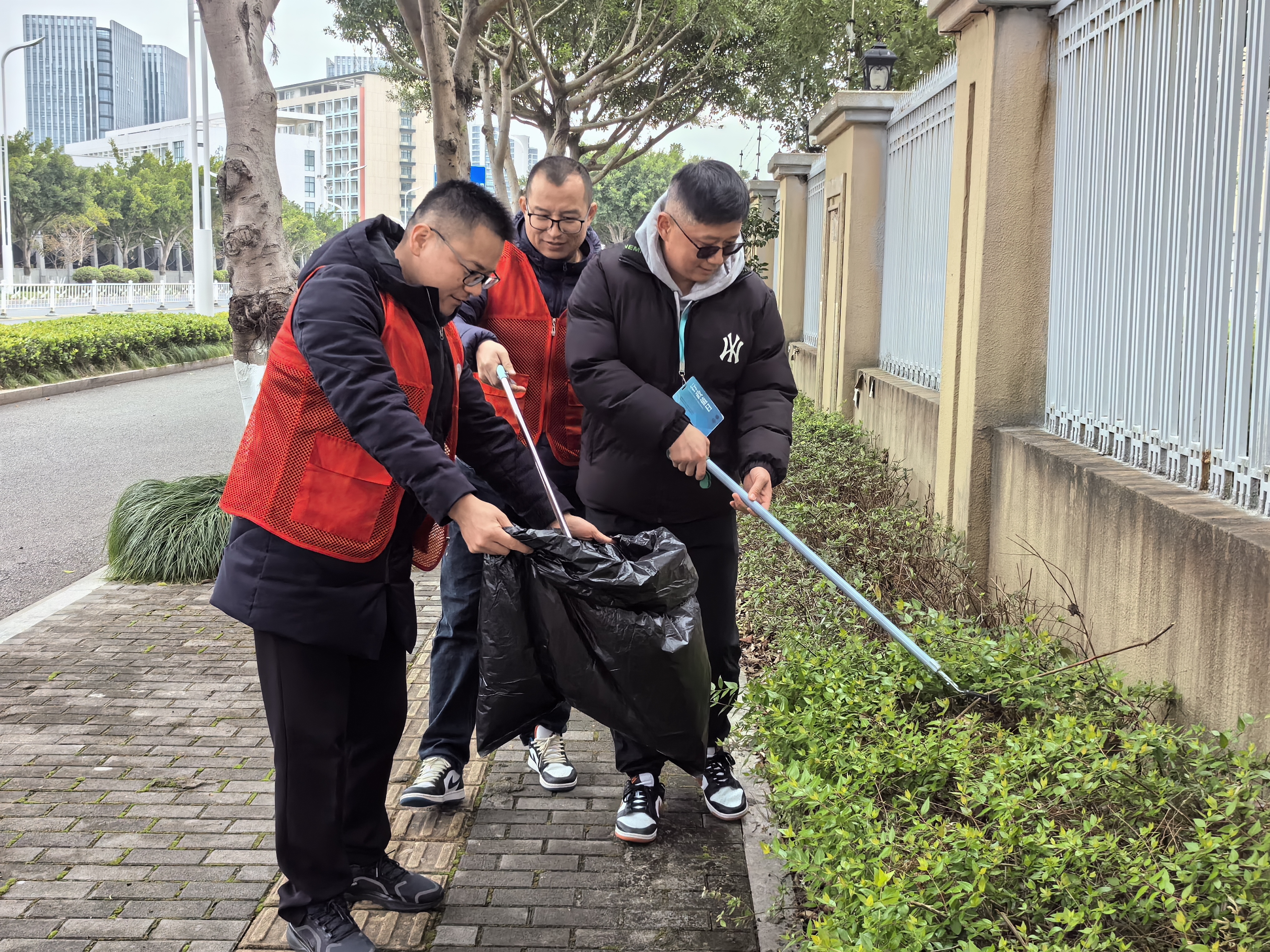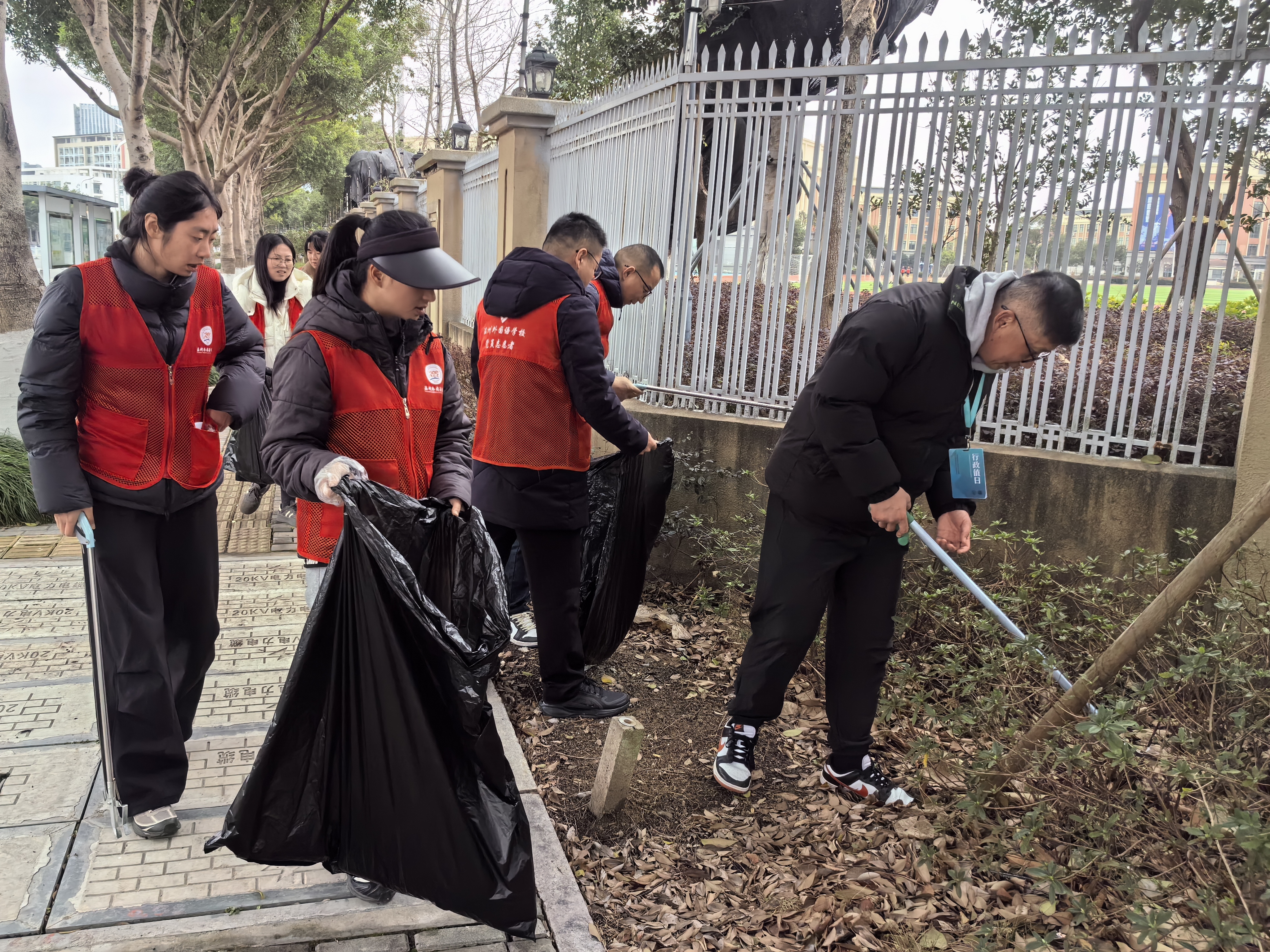 中午12:00,党员们集中学校北门领取垃圾袋、垃圾钳等工具,随后分为两个小队,围绕校园周边开展活动。党员们充分发挥不怕脏、不怕累的精神,对学校围栏外的垃圾,尤其是隐藏在绿化带中的塑料包装、烟头等进行仔细寻找和捡拾。并对学校的围墙、周边电力设施、交通安全进行安全排查。